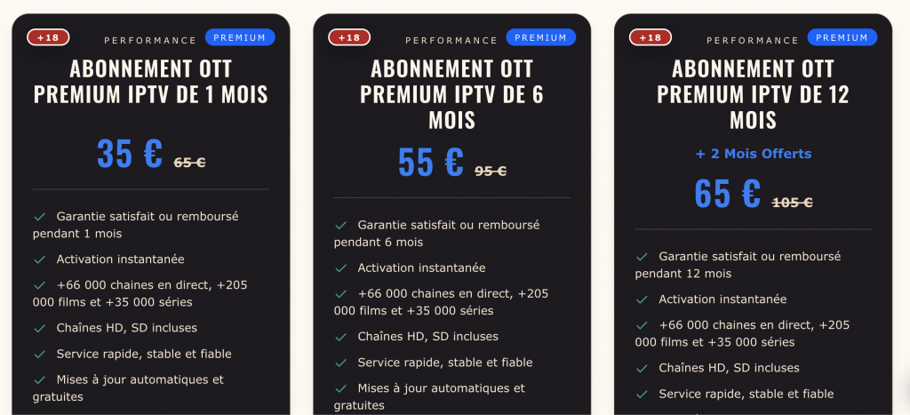 . Abonnement OTT Premium IPTV de 1 mois – 35 € (au lieu de 65 €)
